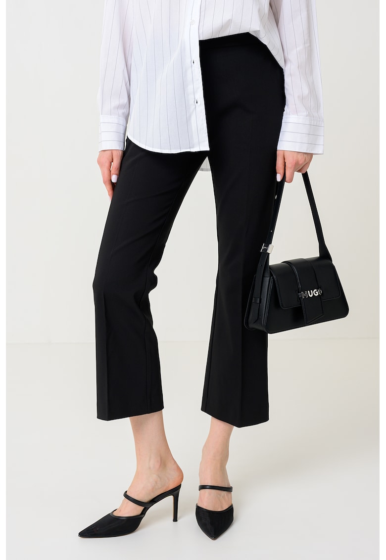 - elastan Imprimeu: uni Croiala: evazat Lungime: crop Talie: inalta Sistem inchidere: fermoar Compozitie Exterior: 50% bumbac