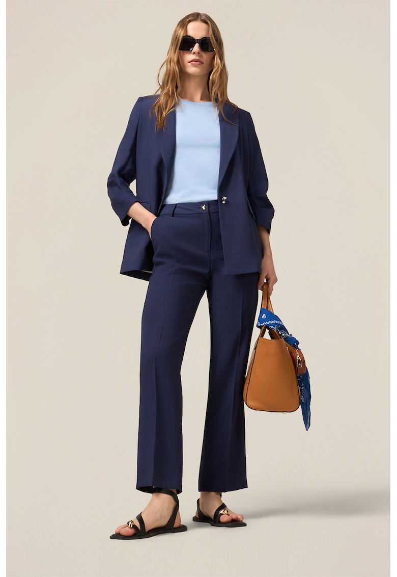- viscoza Imprimeu: uni Croiala: evazat Lungime: crop Talie: inalta Buzunare: laterale Sistem inchidere: fermoar Compozitie Exterior: 92% viscoza