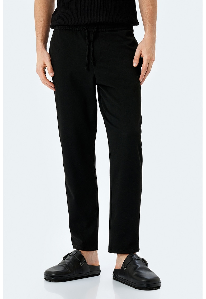 Caracteristici Culoare: negru Imprimeu: uni Material: sintetic Stil: casual Croiala: regular fit Talie: medie Buzunare: 2 oblice Lungime: lungi Detalii: snur pentru ajustare in talie Sistem inchidere: fara inchidere Compozitie Exterior: 62% poliester