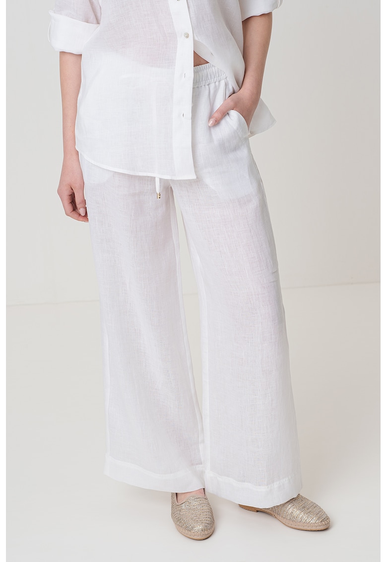 - transparent Stil: casual Material: in Imprimeu: uni Croiala: croiala ampla Lungime: lungi Talie: inalta Detalii: snur pentru ajustare in talie Buzunare: 2 laterale Compozitie Exterior: 100% in Info model Modelul poarta un produs de marimea S/38 IT. Marimi model: 175 cm inaltime