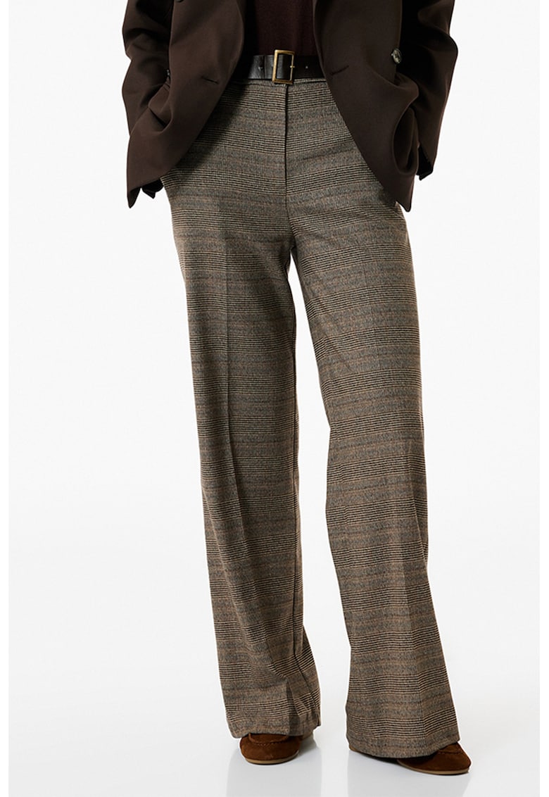 - viscoza Imprimeu: carouri Croiala: croiala ampla Lungime: lungi Talie: inalta Detalii: curea in talie Buzunare: 2 oblice Sistem inchidere: fermoar Compozitie Exterior: 62% poliester