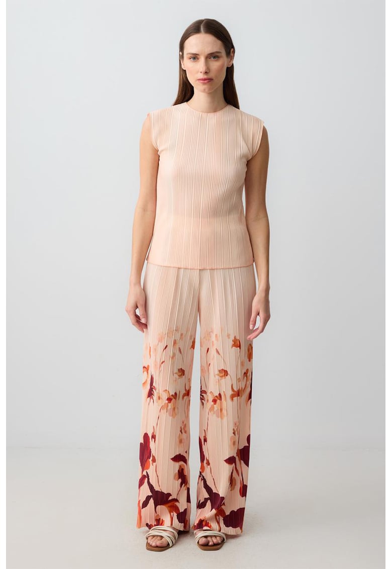- roz somon Stil: casual Material: poliester Imprimeu: floral Croiala: croiala ampla Lungime: lungi Talie: inalta Detalii: aspect texturat
