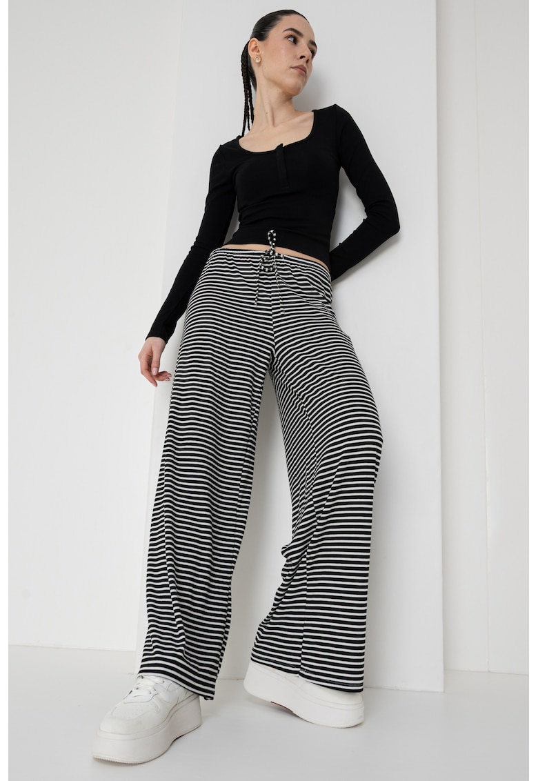 - alb murdar Stil: casual Material: bumbac Imprimeu: dungi Croiala: croiala ampla Lungime: lungi Talie: medie Detalii: snur pentru ajustare in talie Compozitie Exterior: 95% bumbac