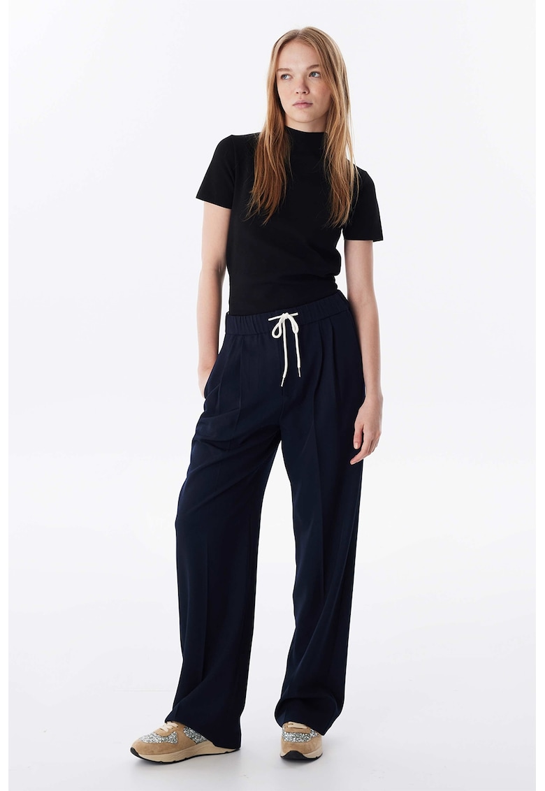 Caracteristici Culoare: negru Stil: casual Material: poliester Imprimeu: uni Croiala: croiala ampla Lungime: lungi Talie: inalta Detalii: banda elastica in talie cu snur pentru ajustare Sistem inchidere: fara inchidere Compozitie Exterior: 93% poliester