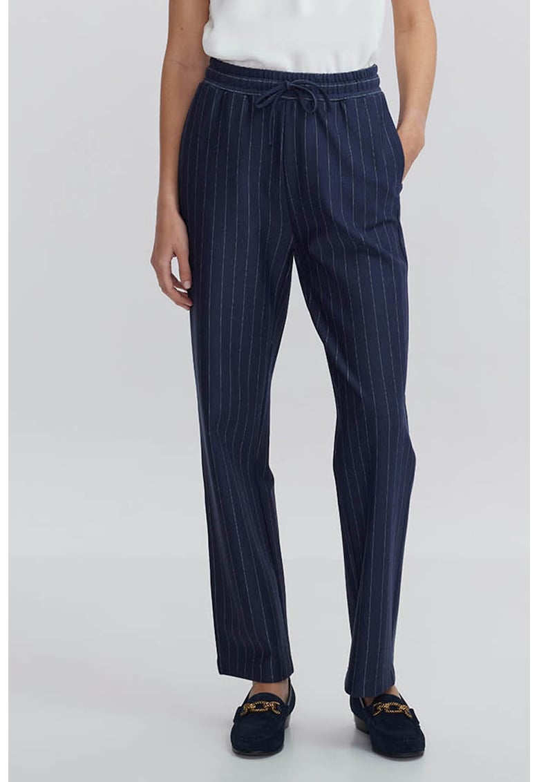 - viscoza Imprimeu: dungi Croiala: regular fit Lungime: lungi Talie: medie Detalii: snur pentru ajustare si insertie elastica in talie Buzunare: in cusaturile laterale
