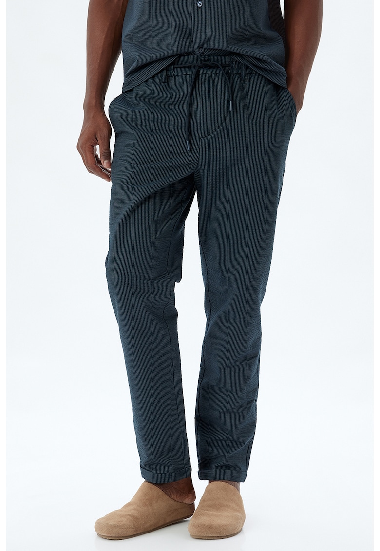 - bumbac Stil: casual Croiala: slim fit Talie: medie Buzunare: 2 laterale Lungime: lungi Detalii: snur elastic in talie