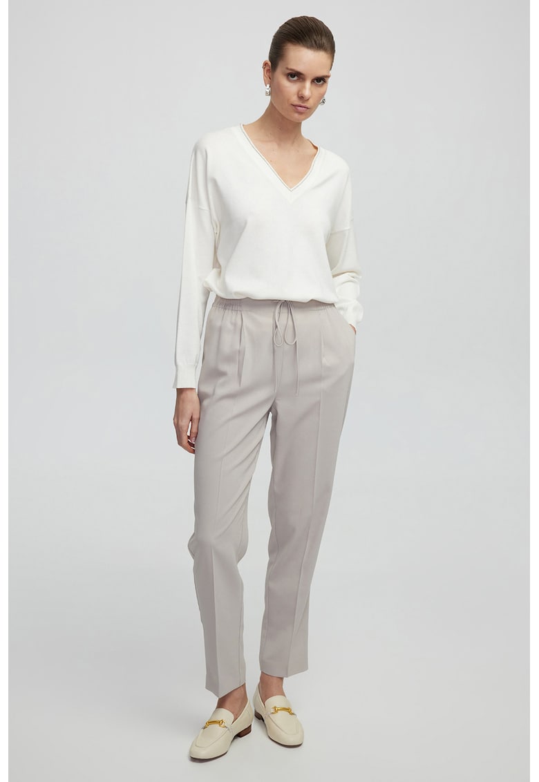Caracteristici Culoare: gri deschis Stil: casual Material: poliester Imprimeu: uni Croiala: regular fit Lungime: lungi Talie: inalta Detalii: pensa