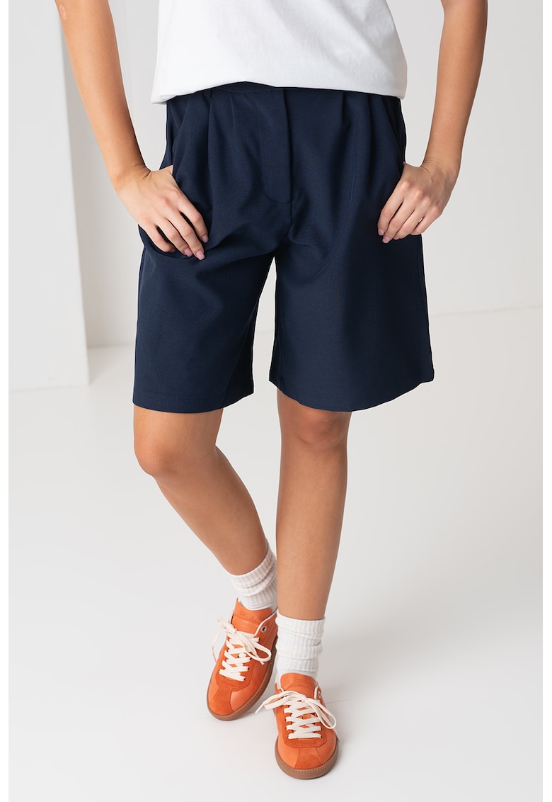 Caracteristici Culoare: indigo Stil: casual Material: poliester Imprimeu: uni Croiala: dreapta Lungime: scurti Talie: inalta Buzunare: pe partea din fata si pe partea din spate Sistem inchidere: fermoar Compozitie Exterior: 94% poliester