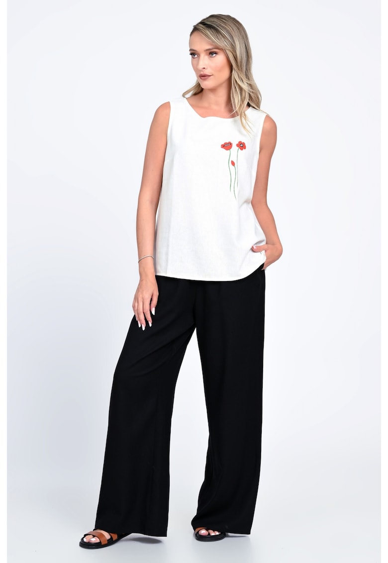 - in Imprimeu: uni Croiala: croiala ampla Detalii: talie elastica Buzunare: 2 pe spate Sistem inchidere: fara inchidere Compozitie Exterior: 50% in