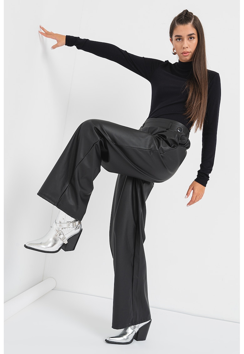 Caracteristici Culoare: negru Stil: casual Material: poliester Imprimeu: uni Croiala: croiala ampla Lungime: lungi Talie: inalta Detalii: banda elastica in talie