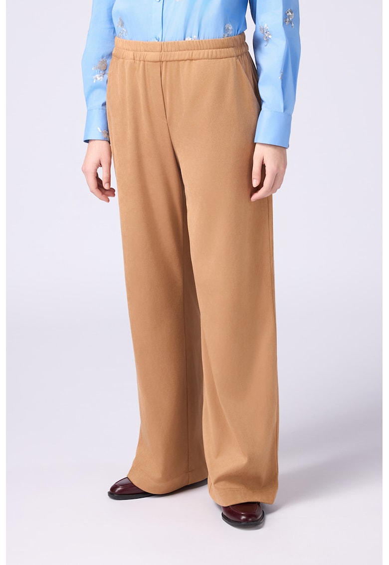 Caracteristici Culoare: maro camel Stil: casual Material: sintetic Imprimeu: uni Croiala: croiala ampla Lungime: lungi Talie: inalta Detalii: talie elastica Buzunare: frontale