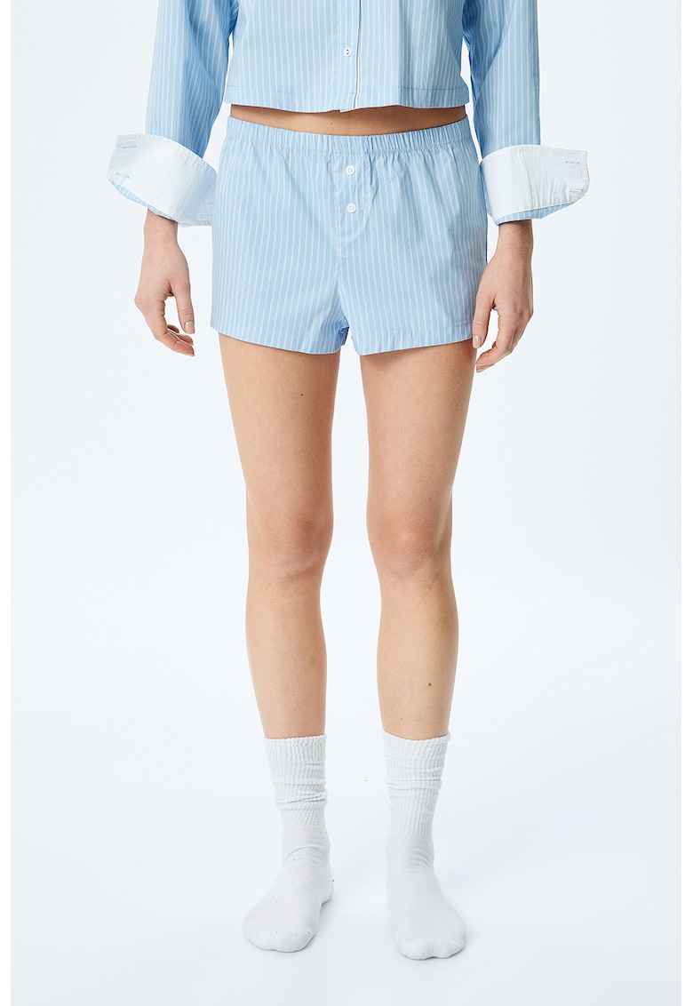 - poliamida Imprimeu: dungi Croiala: regular fit Talie: medie Lungime pantaloni: scurti Sistem inchidere: fara inchidere Compozitie Exterior: 75% bumbac