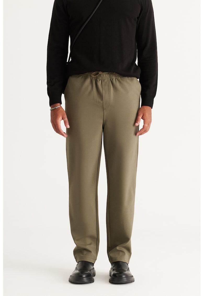 Caracteristici Culoare: kaki Imprimeu: uni Material: bumbac Stil: casual Croiala: dreapta Talie: medie Buzunare: 3 Lungime: lungi Detalii: banda elastica