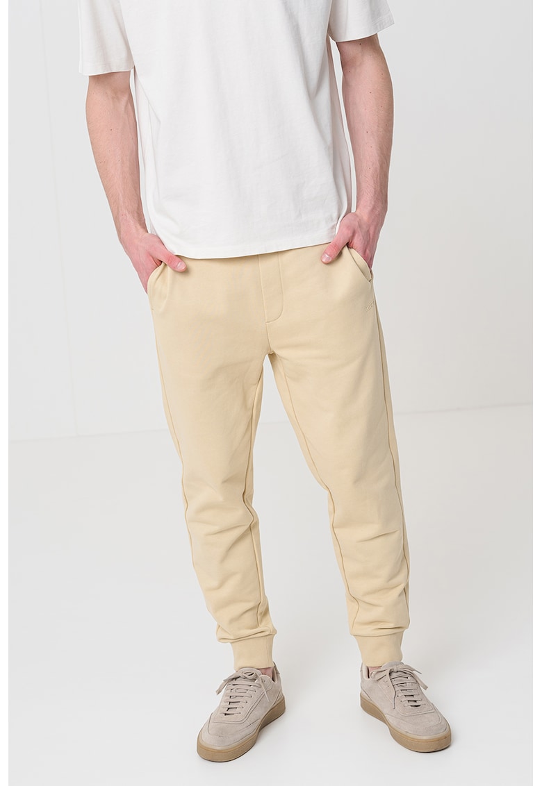 Caracteristici Culoare: bej Imprimeu: logo Material: bumbac Stil: casual Croiala: conica Talie: medie Buzunare: laterale Lungime: lungi Detalii: snur pentru ajsutare Sistem inchidere: fara inchidere Compozitie Exterior: 100% bumbac Info model Modelul poarta un produs de marimea M. Marimi model: 190 cm inaltime