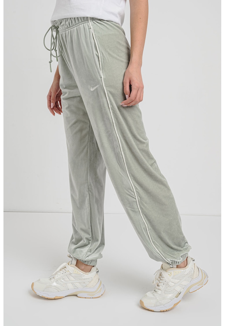 - verde pal Stil: casual Material: catifea Imprimeu: uni Croiala: relaxed fit Lungime: lungi Talie: inalta Detalii: snur pentru ajustare Buzunare: 2 laterale Sistem inchidere: fara inchidere Compozitie Exterior: 90% poliester
