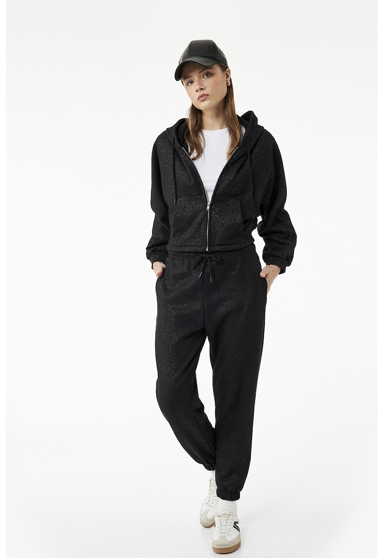 - bumbac Imprimeu: uni Croiala: relaxed fit Lungime: lungi Talie: medie Buzunare: in cusaturile laterale Sistem inchidere: fara inchidere Compozitie Exterior: 68% poliester