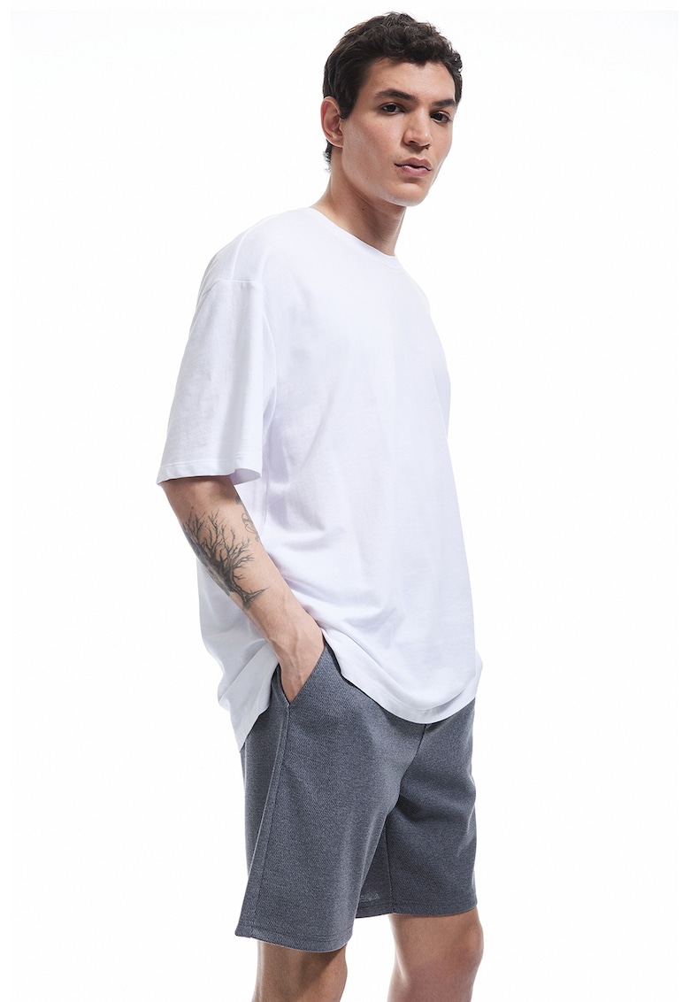 - bumbac Stil: casual Croiala: relaxed fit Talie: medie Buzunare: 2 buzunare laterale Lungime: scurti Sistem inchidere: fara inchidere Compozitie Exterior: 79% poliester