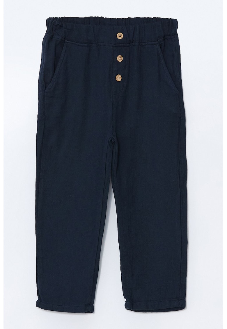 Caracteristici Tip produs: pantaloni lungi Culoare: albastru inchis Material: bumbac Stil: casual Imprimeu: uni Croiala: regular fit Talie: inalta Buzunare: frontale