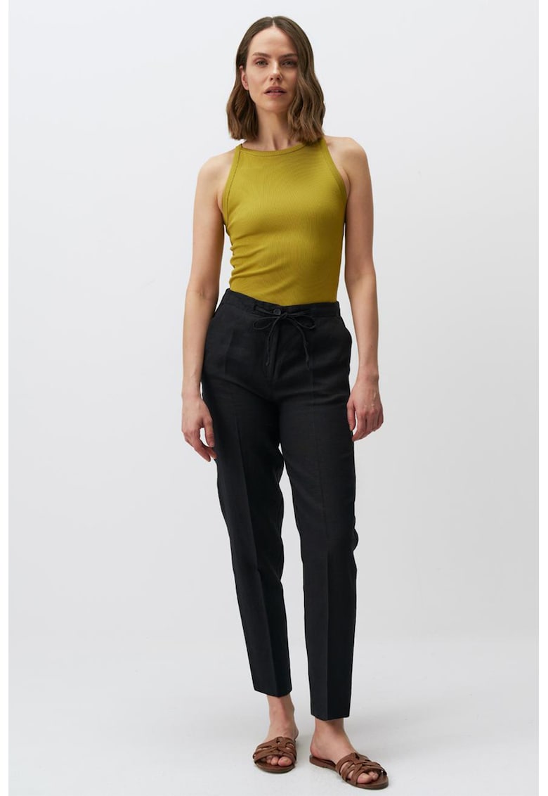 Caracteristici Culoare: negru Stil: casual Material: in Imprimeu: uni Croiala: conica Lungime: lungi Talie: medie Detalii: talie ajustabila Buzunare: 2 oblice Sistem inchidere: fara inchidere Compozitie Exterior: 100% in Info model Modelul poarta un produs de marimea S. Marimi model: 173 cm inaltime