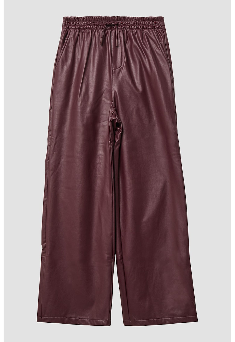 Caracteristici Tip produs: pantaloni lungi Culoare: visiniu Material: poliester Stil: casual Imprimeu: uni Croiala: croiala ampla Talie: inalta Buzunare: 2 oblice Sistem inchidere: fara inchidere Colectie: primavara