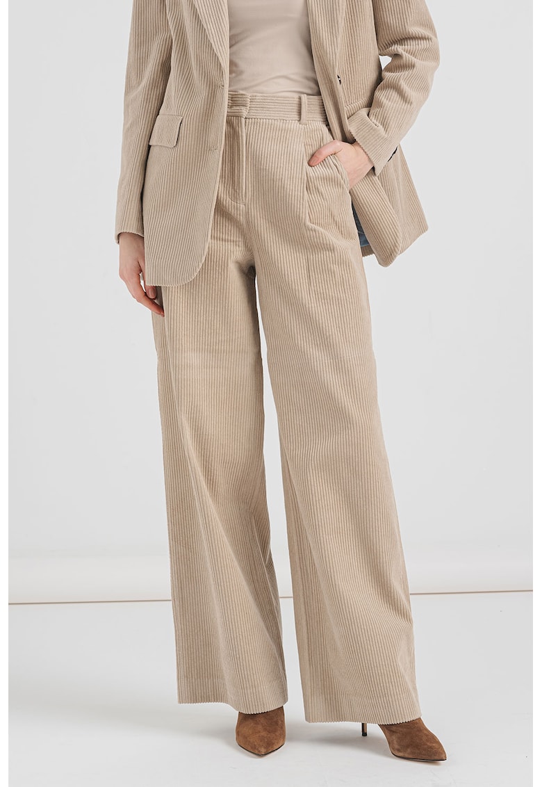 Caracteristici Culoare: maro nisip Stil: casual Material: reiat Imprimeu: uni Croiala: croiala ampla Lungime: lungi Talie: inalta Buzunare: cu refilet pe partea din spate