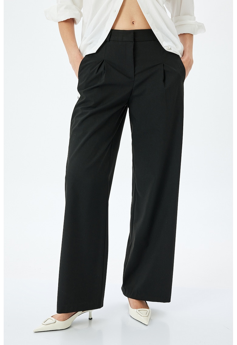 - viscoza Imprimeu: uni Croiala: dreapta Lungime: lungi Talie: medie Buzunare: 2 laterale Sistem inchidere: fermoar Compozitie Exterior: 63% poliester