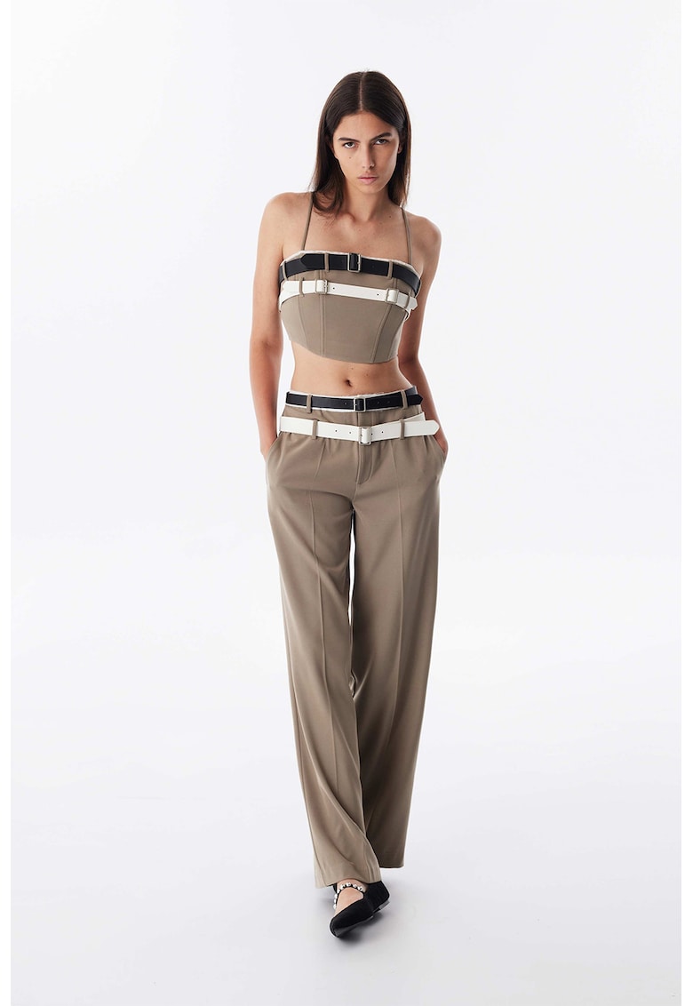 - elastan Imprimeu: uni Croiala: dreapta Lungime: lungi Talie: medie Detalii: curele decorative Buzunare: 2 laterale