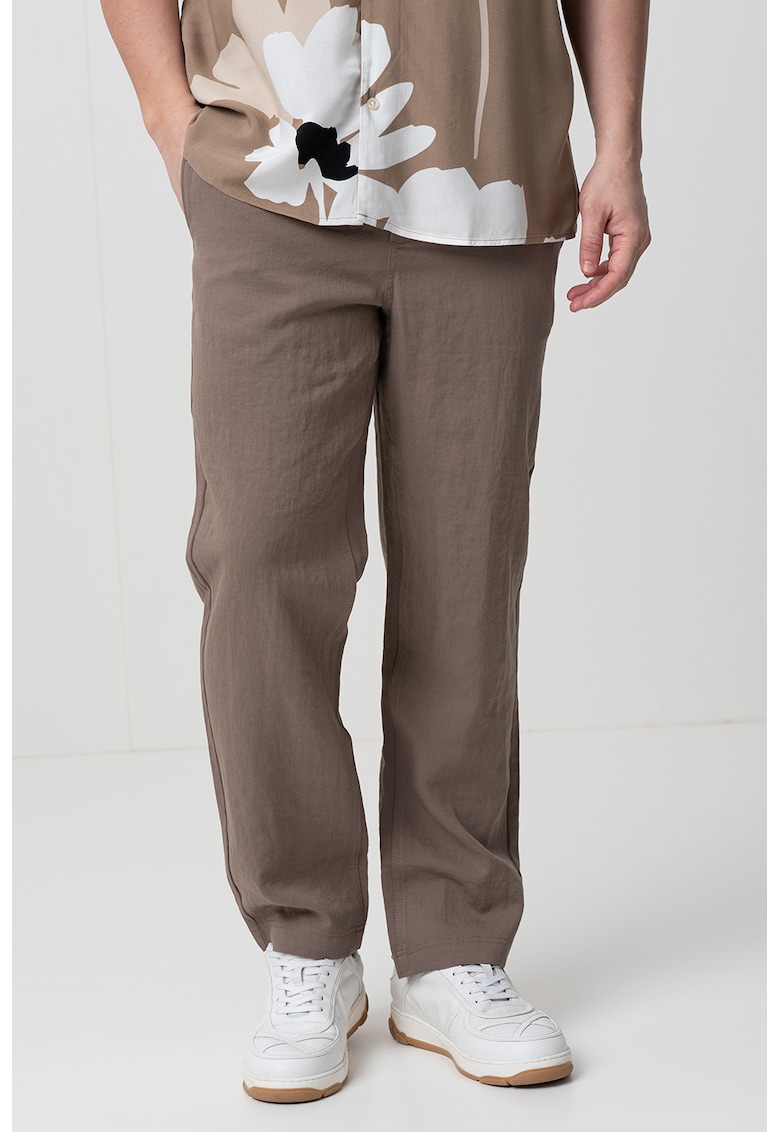 Caracteristici Culoare: maro Imprimeu: uni Material: ramie Stil: casual Croiala: dreapta Talie: medie Buzunare: pe partea din fata si pe partea din spate Lungime: lungi Compozitie Exterior: 80% ramie