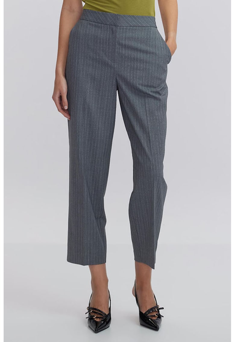 - elastan Imprimeu: dungi Croiala: dreapta Lungime: capri Talie: medie Detalii: insertie elastica in talie Buzunare: 2 laterale
