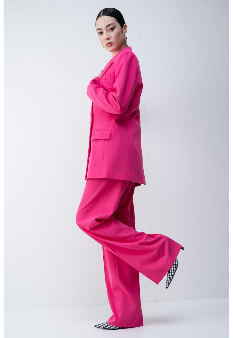 - viscoza Imprimeu: uni Croiala: croiala ampla Lungime: lungi Talie: inalta Buzunare: 3 Sistem inchidere: fermoar Compozitie Exterior: 67% poliester