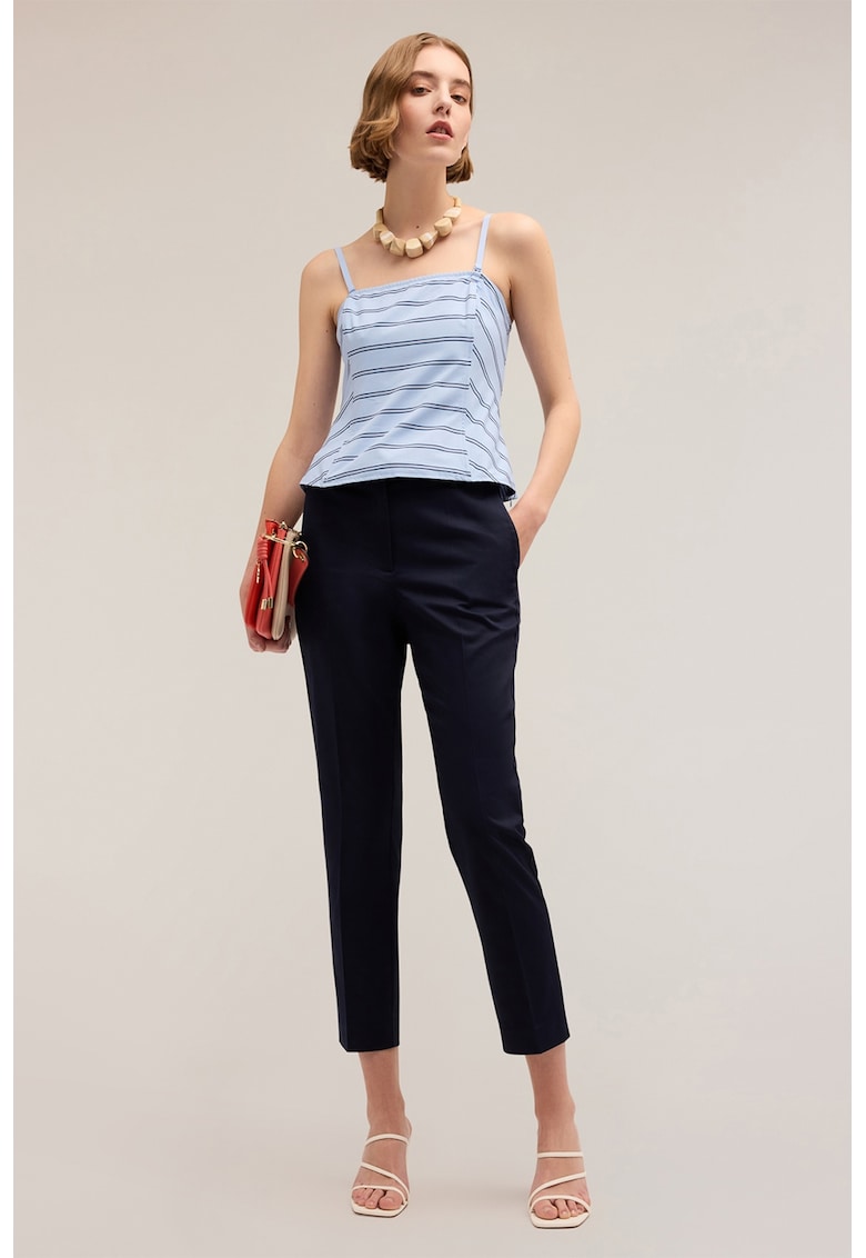 - bumbac Imprimeu: uni Croiala: conica Lungime: crop Talie: inalta Buzunare: laterale Sistem inchidere: fermoar Compozitie Exterior: 98% bumbac