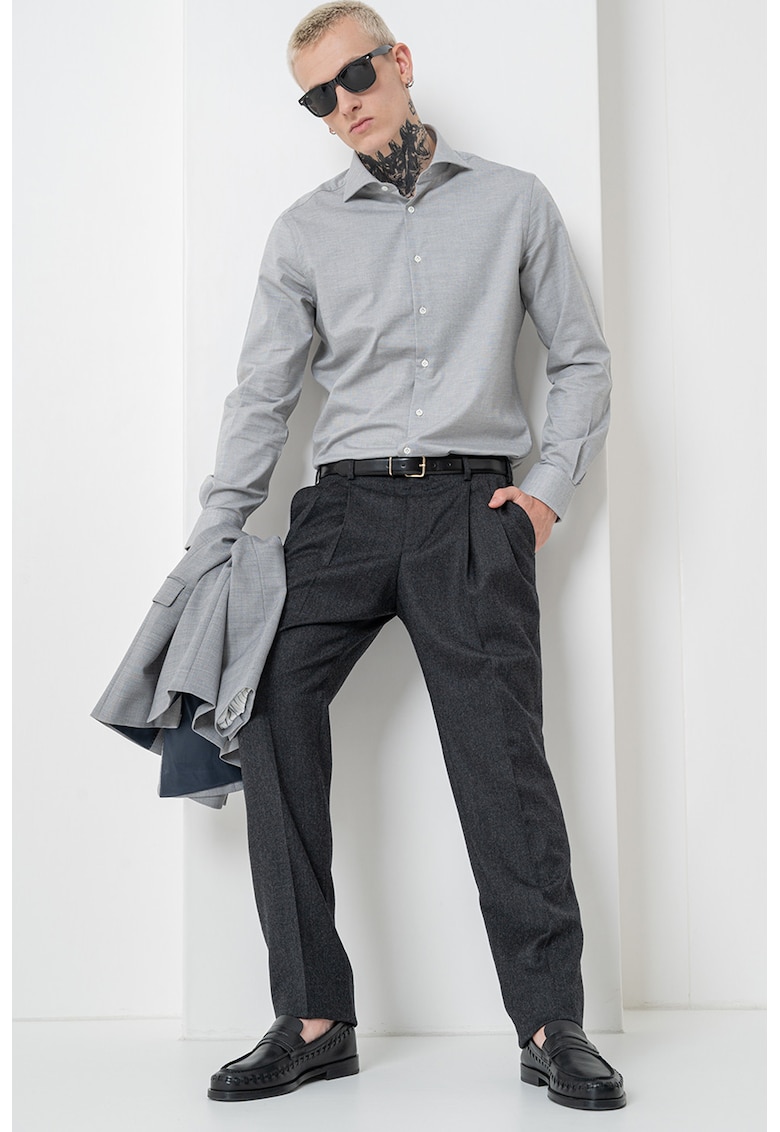 Caracteristici Culoare: negru stins Imprimeu: uni Material: lana Stil: elegant Croiala: dreapta Talie: medie Buzunare: buzunare laterale Lungime: lungi Detalii: pensa Sistem inchidere: fermoar