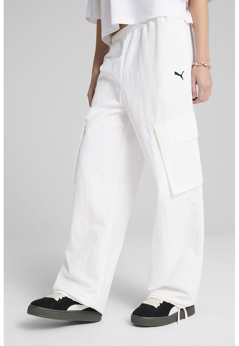 Caracteristici Culoare: alb Stil: casual Material: nylon Imprimeu: uni Croiala: evazat Lungime: lungi Talie: medie Detalii: talie elastica