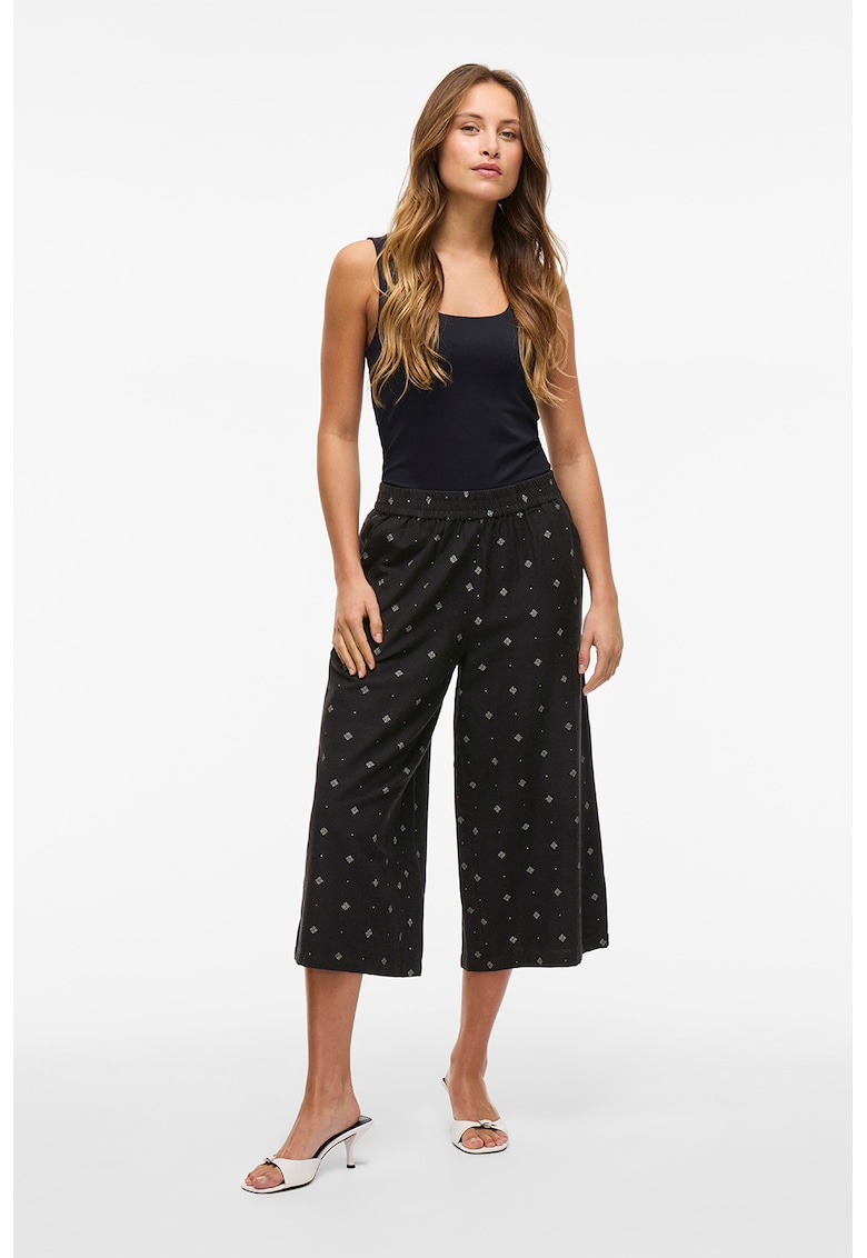 - in Imprimeu: grafic Croiala: evazat Lungime: capri Talie: medie Detalii: talie elastica Sistem inchidere: fara inchidere Compozitie Exterior: 50% viscoza