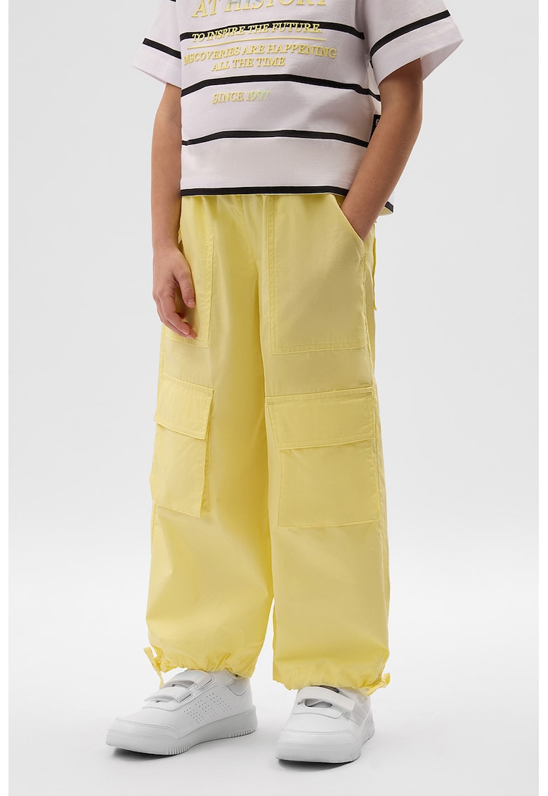 Caracteristici Tip produs: pantaloni lungi Culoare: galben Material: bumbac Stil: casual Imprimeu: uni Croiala: evazat Talie: medie Buzunare: buzunare laterale Detalii: talie elastica Sistem inchidere: fara inchidere Colectie: primavara