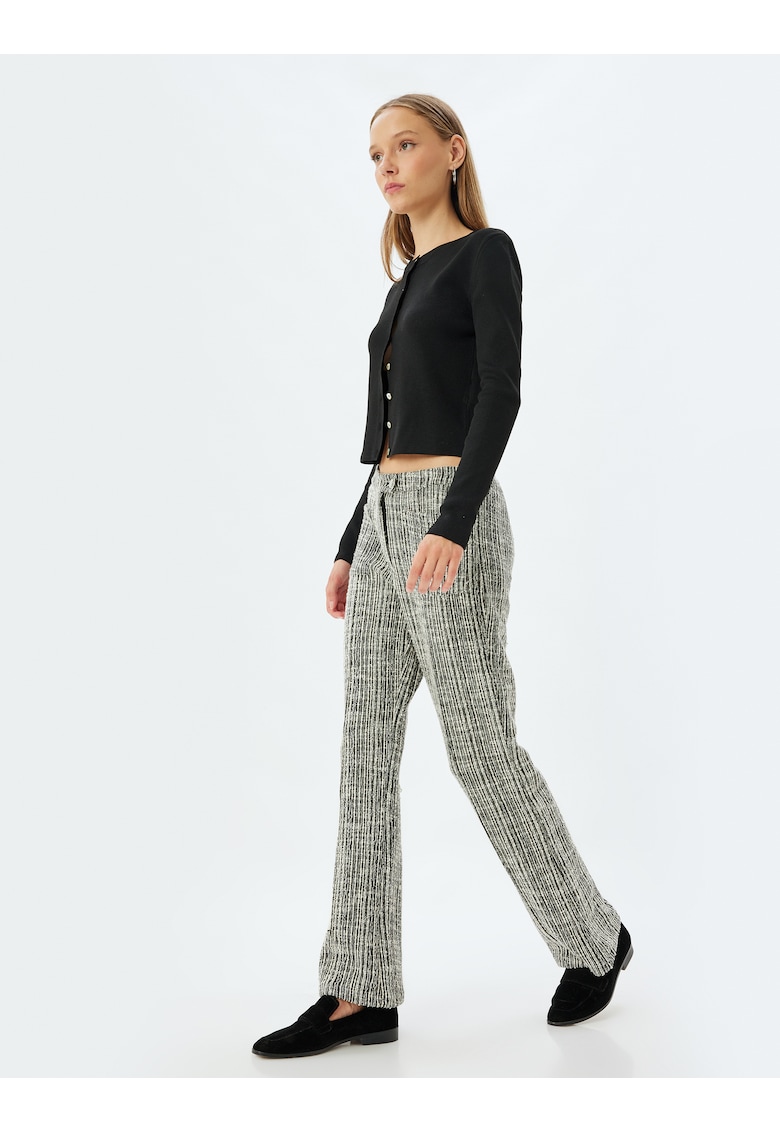 - elastan Imprimeu: dungi Croiala: evazat Lungime: lungi Talie: inalta Sistem inchidere: fermoar Compozitie Exterior: bumbac