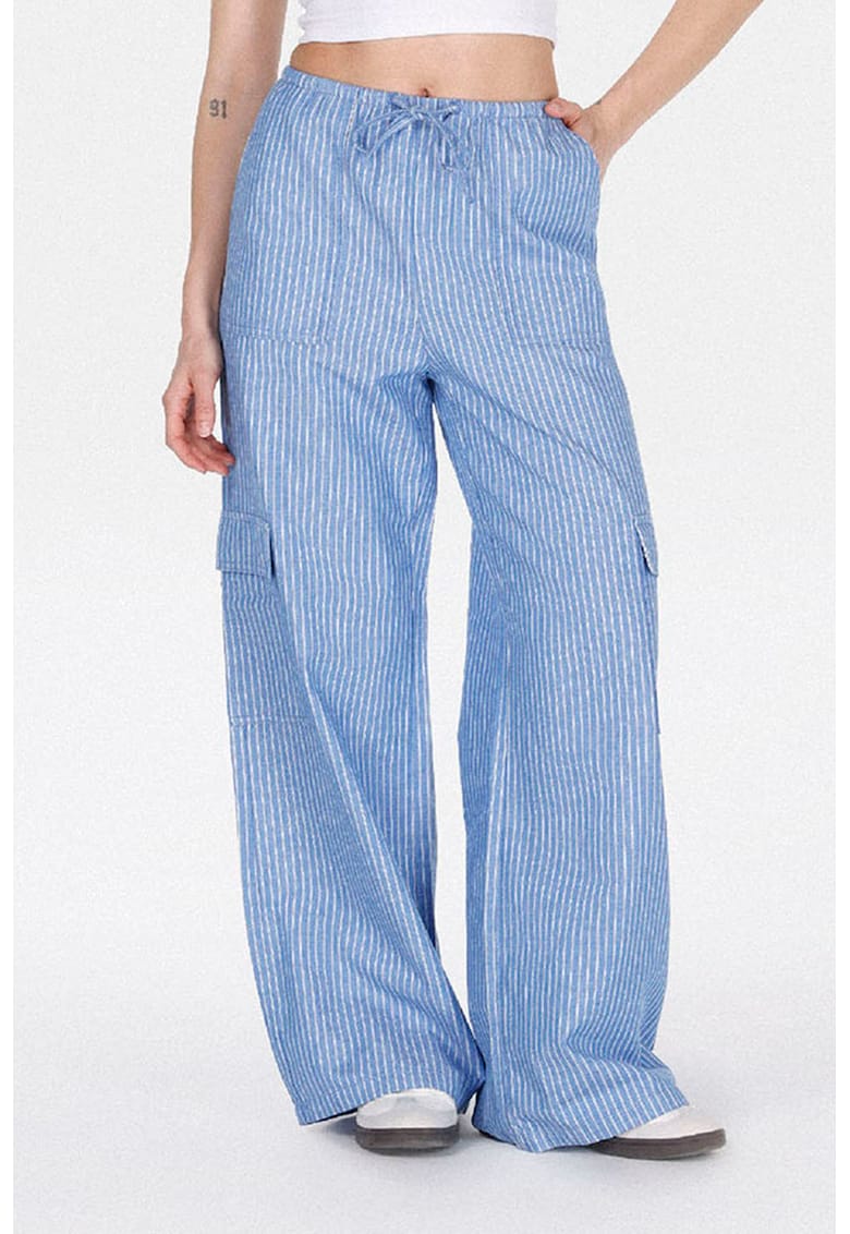 - lyocell Imprimeu: dungi Croiala: evazat Lungime: lungi Talie: medie Detalii: talie cu snur Buzunare: buzunare laterale Sistem inchidere: fara inchidere Compozitie Exterior: 51% bumbac