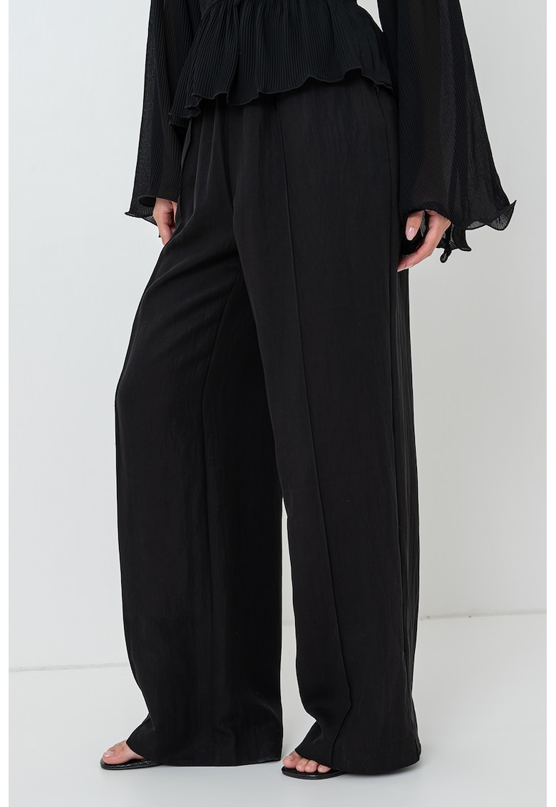 - lyocell Imprimeu: uni Croiala: evazat Lungime: lungi Talie: medie Detalii: cordon in talie Buzunare: buzunare laterale Sistem inchidere: fara inchidere Compozitie Exterior: 65% lyocell