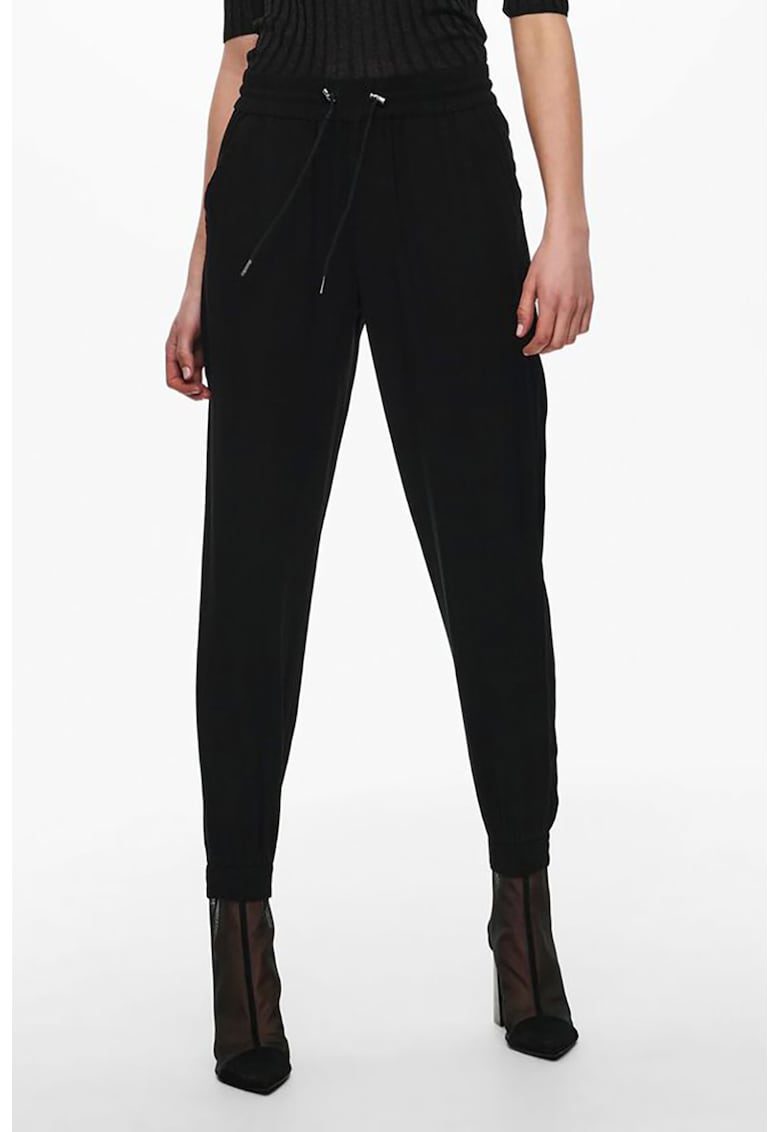 - viscoza Imprimeu: uni Croiala: conica Lungime: crop Talie: medie Detalii: mansete elastice