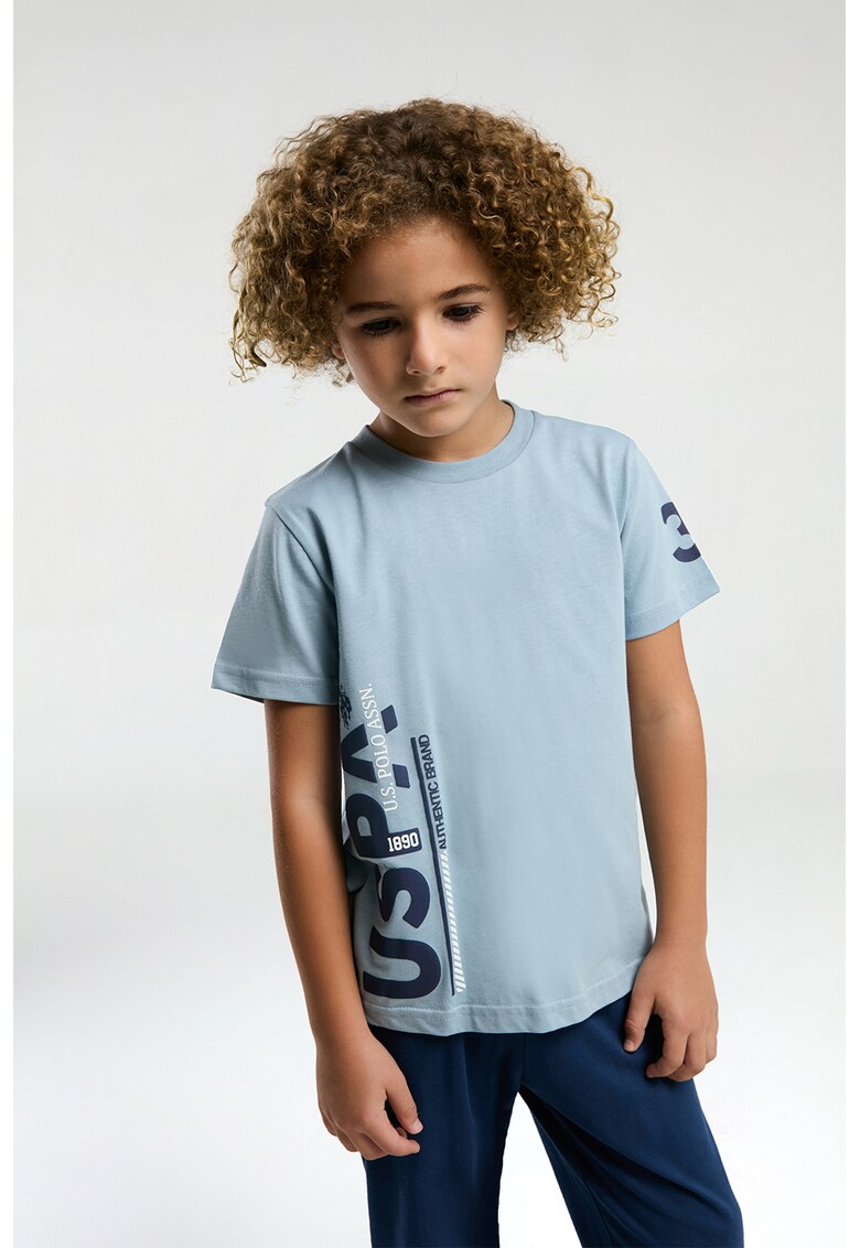 Caracteristici Tip produs: pijama Numar piese: 2 Continut pachet: un tricou si o pereche de pantaloni lungi Culoare: albastru prafuit