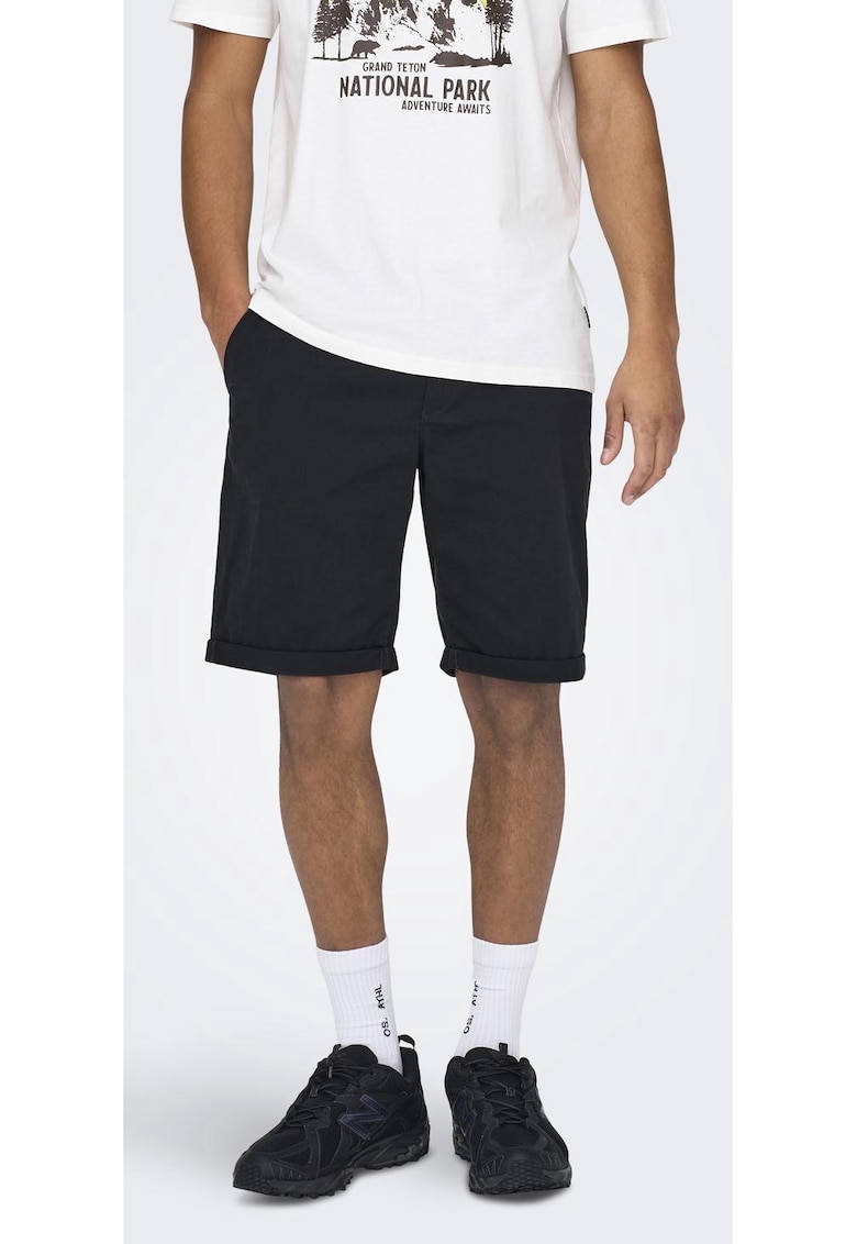 Caracteristici Culoare: albastru inchis Imprimeu: uni Material: bumbac Stil: casual Croiala: regular fit Talie: medie Buzunare: 2 buzunare laterale Lungime: scurti Detalii: aplicatie cu logo Sistem inchidere: fermoar Colectie: premium Compozitie Exterior: bumbac