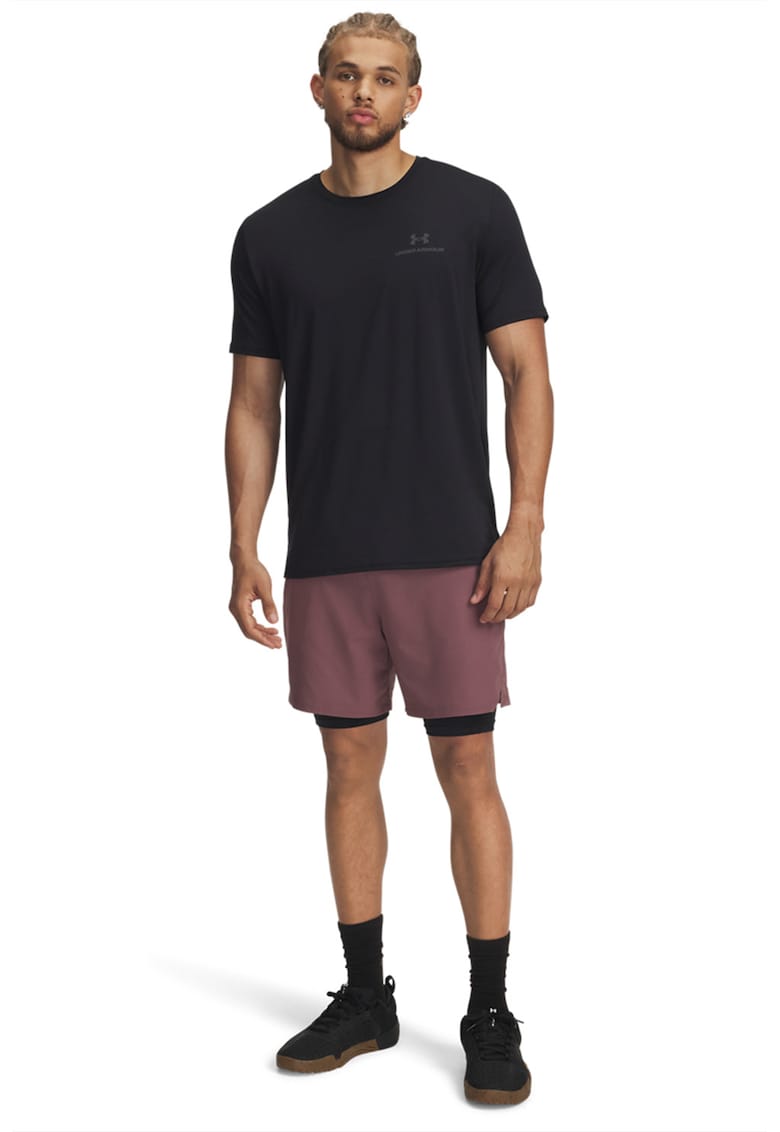 Caracteristici generale Tip produs: pantaloni Tip: scurti Stil: talie medie Culoare: rosu stins Material: poliester Tehnologie material: ua vanish Imprimeu: uni Sport: fitness Detalii: material ce indeparteaza umezeala