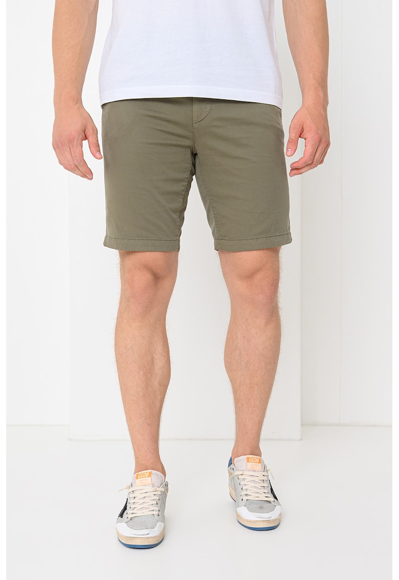 Caracteristici Culoare: verde sparanghel Imprimeu: uni Material: bumbac Stil: casual Croiala: slim fit Talie: medie Buzunare: 2 laterale Lungime: scurti Sistem inchidere: fermoar
