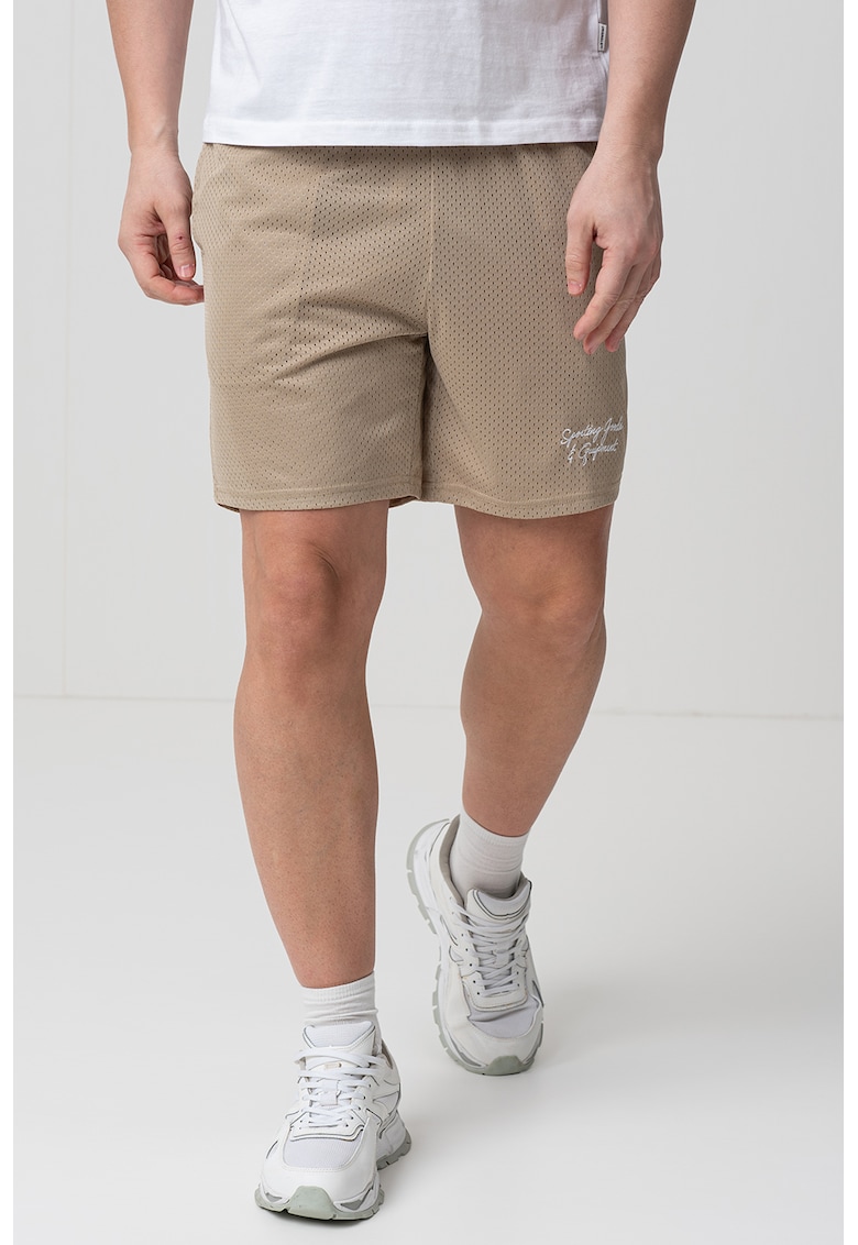 Caracteristici Culoare: bej Imprimeu: text Material: poliester Stil: casual Croiala: regular fit Talie: medie Lungime: scurti Detalii: talie elastica