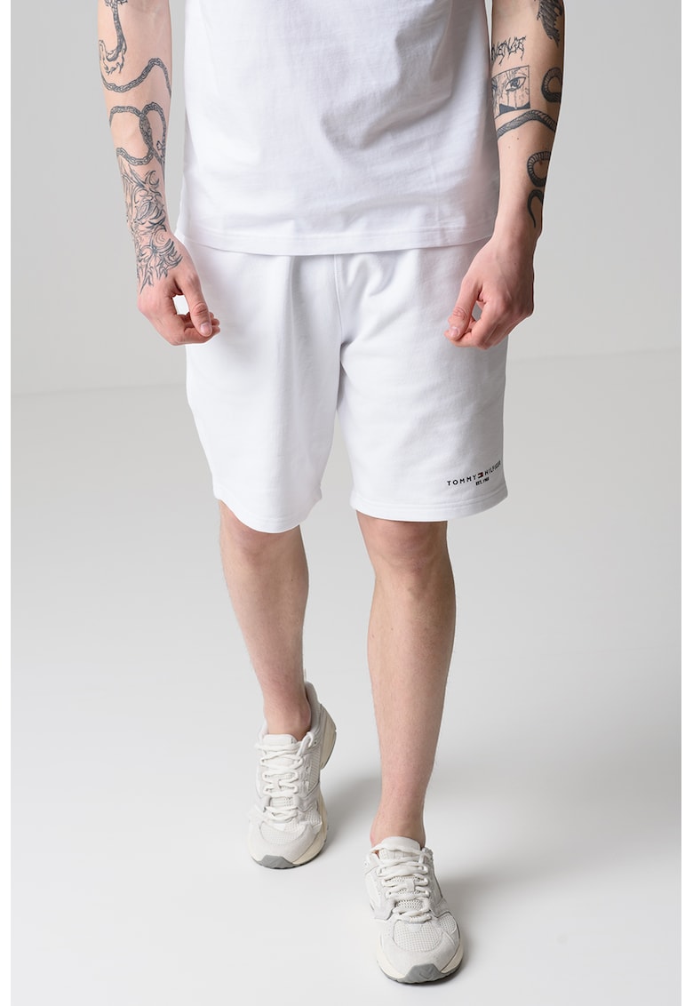 Caracteristici Culoare: alb optic Imprimeu: logo Material: bumbac Stil: casual Croiala: regular fit Talie: medie Buzunare: 2 laterale Lungime: scurti Sistem inchidere: fara inchidere Compozitie Exterior: 100% bumbac Info model Modelul poarta un produs de marimea M. Marimi model: 188 cm inaltime