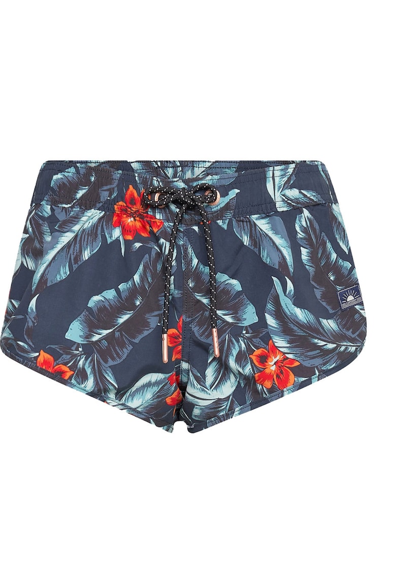 Caracteristici Culoare: albastru marin Stil: casual Material: poliester Imprimeu: floral Croiala: regular fit Lungime: scurti Talie: medie Detalii: talie elastica cu snur pentru ajustare