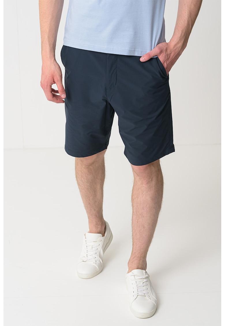 Caracteristici Culoare: bleumarin Imprimeu: uni Material: poliester Stil: casual Croiala: regular fit Talie: medie Buzunare: 2 laterale Lungime: scurti Sistem inchidere: fermoar