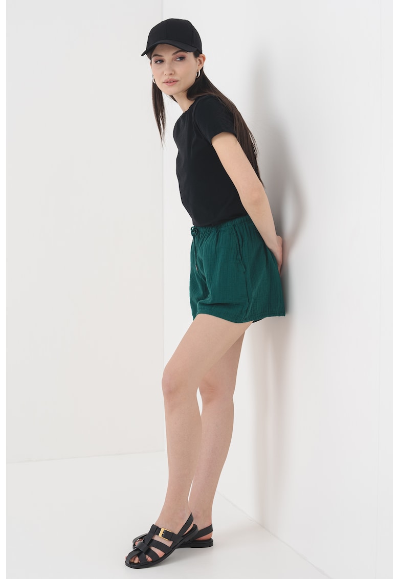 Caracteristici Culoare: verde Stil: casual Material: bumbac Imprimeu: uni Croiala: relaxed fit Lungime: scurti Talie: inalta Detalii: snur pentru ajustare in talie Buzunare: 2 laterale Compozitie Exterior: 100% bumbac Info model Modelul poarta un produs de marimea XS. Marimi model: 176 cm inaltime