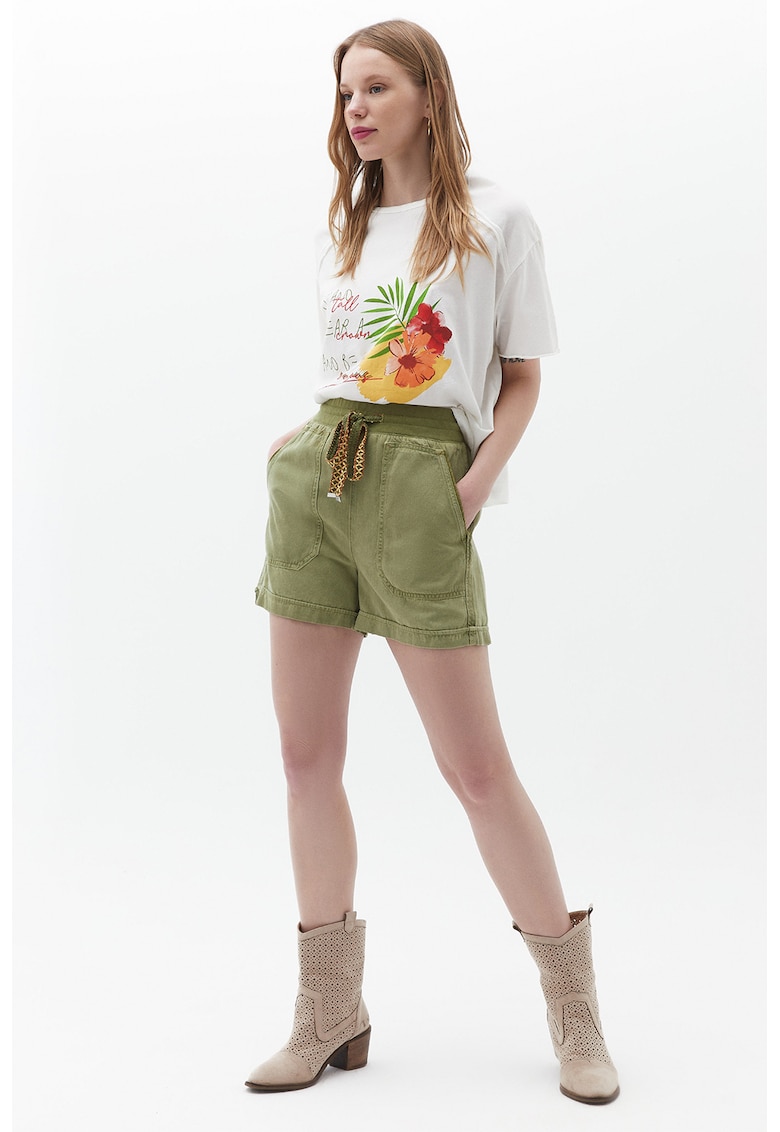 - lyocell Imprimeu: uni Croiala: relaxed fit Lungime: scurti Talie: medie Detalii: banda elastica in talie cu snur pentru ajustare Buzunare: 2 oblice Sistem inchidere: fara inchidere Compozitie Exterior: 62% lyocell