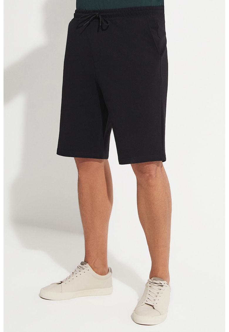 Caracteristici Culoare: negru Imprimeu: uni Material: bumbac Stil: casual Croiala: regular fit Talie: medie Buzunare: pe ambele parti Lungime: scurti Detalii: talie ajustabila